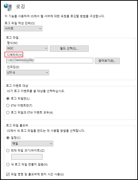 ▶ 사이트 홈 > IIS > 로깅 > 디렉터리
