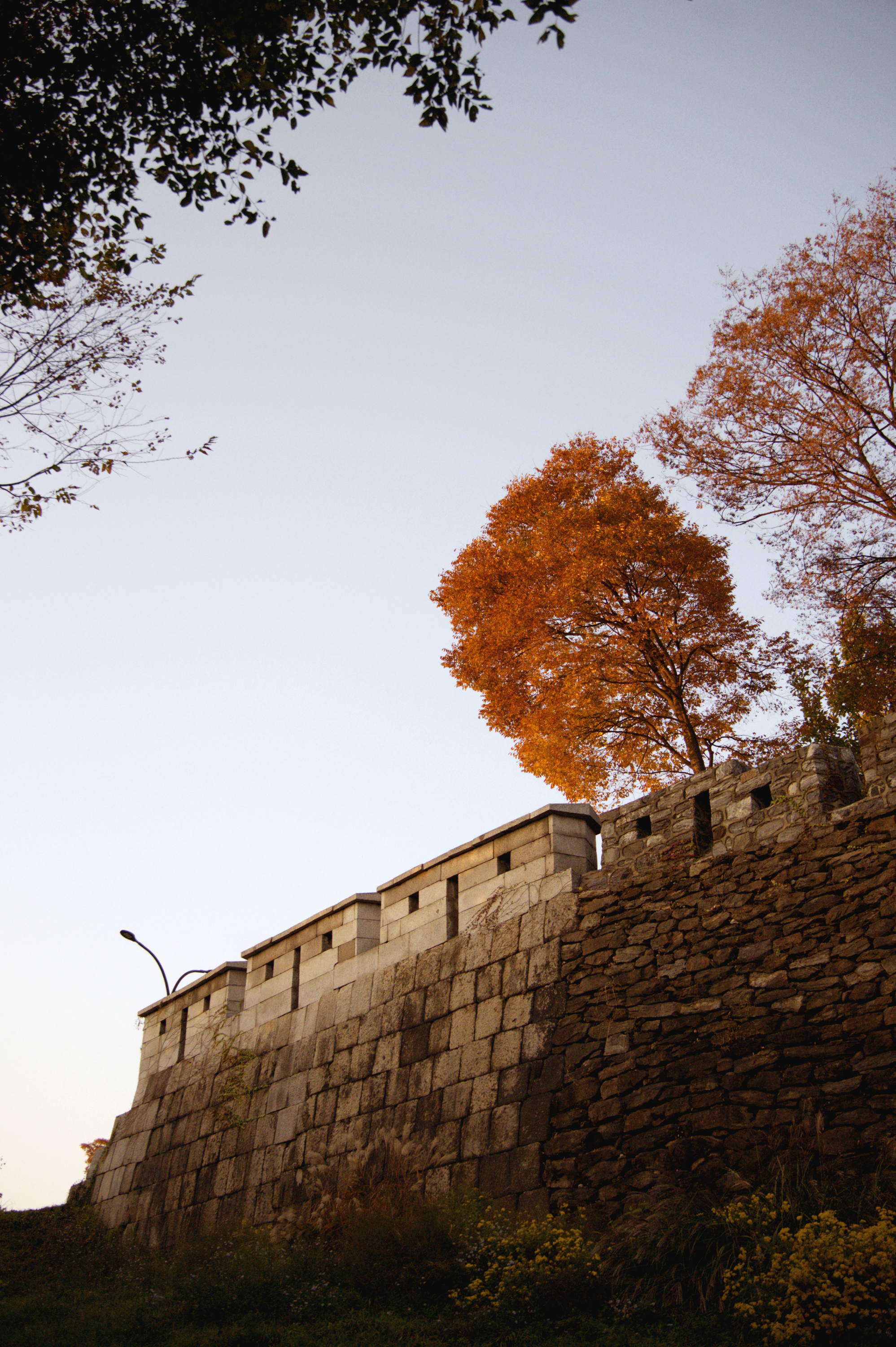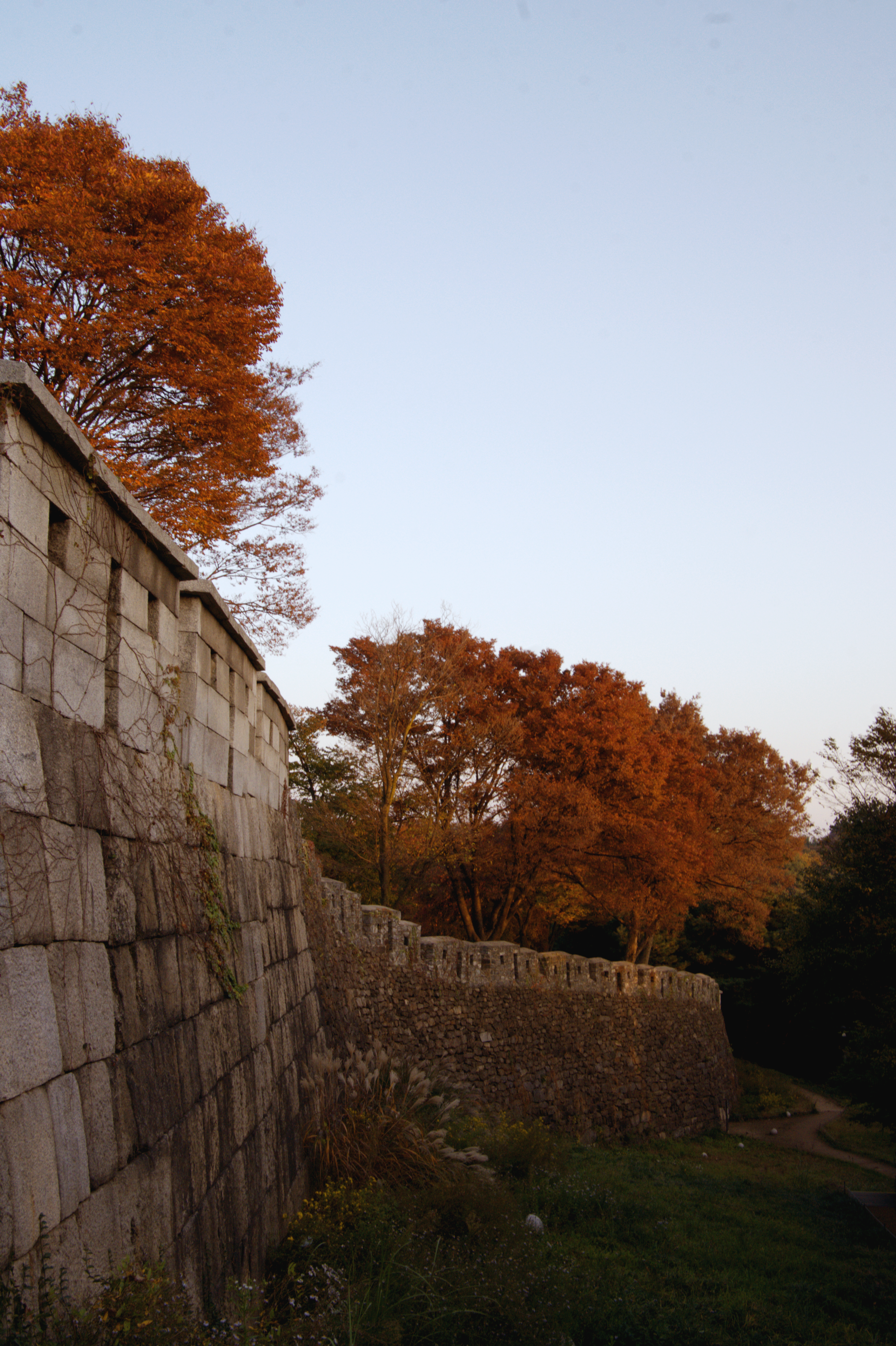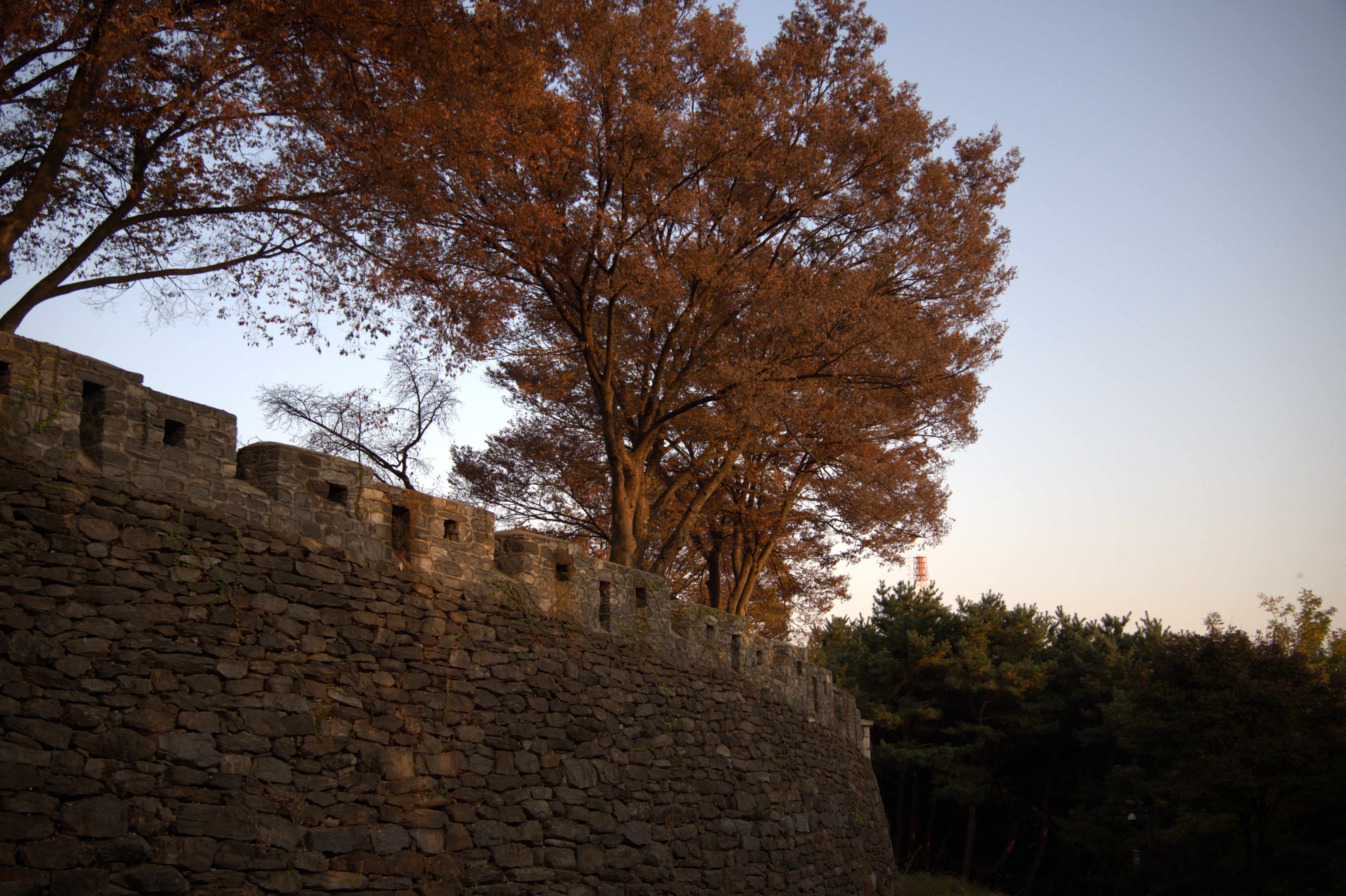 남산의 초입에 이미 성벽을 끼고 빼꼼 튀어나온 단풍나무. 노을의 빛을 머금어 더욱 아름답게 느껴진다.