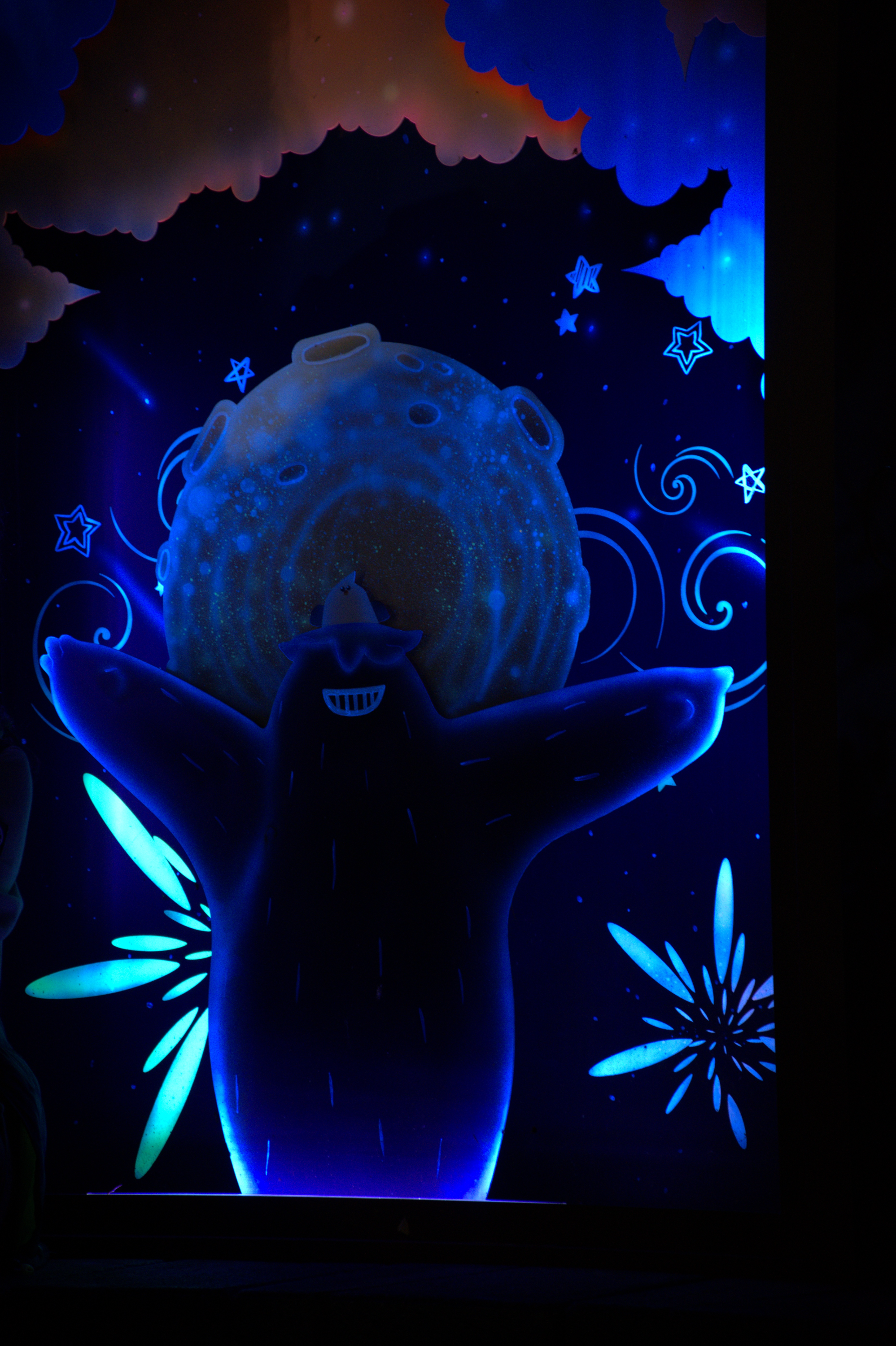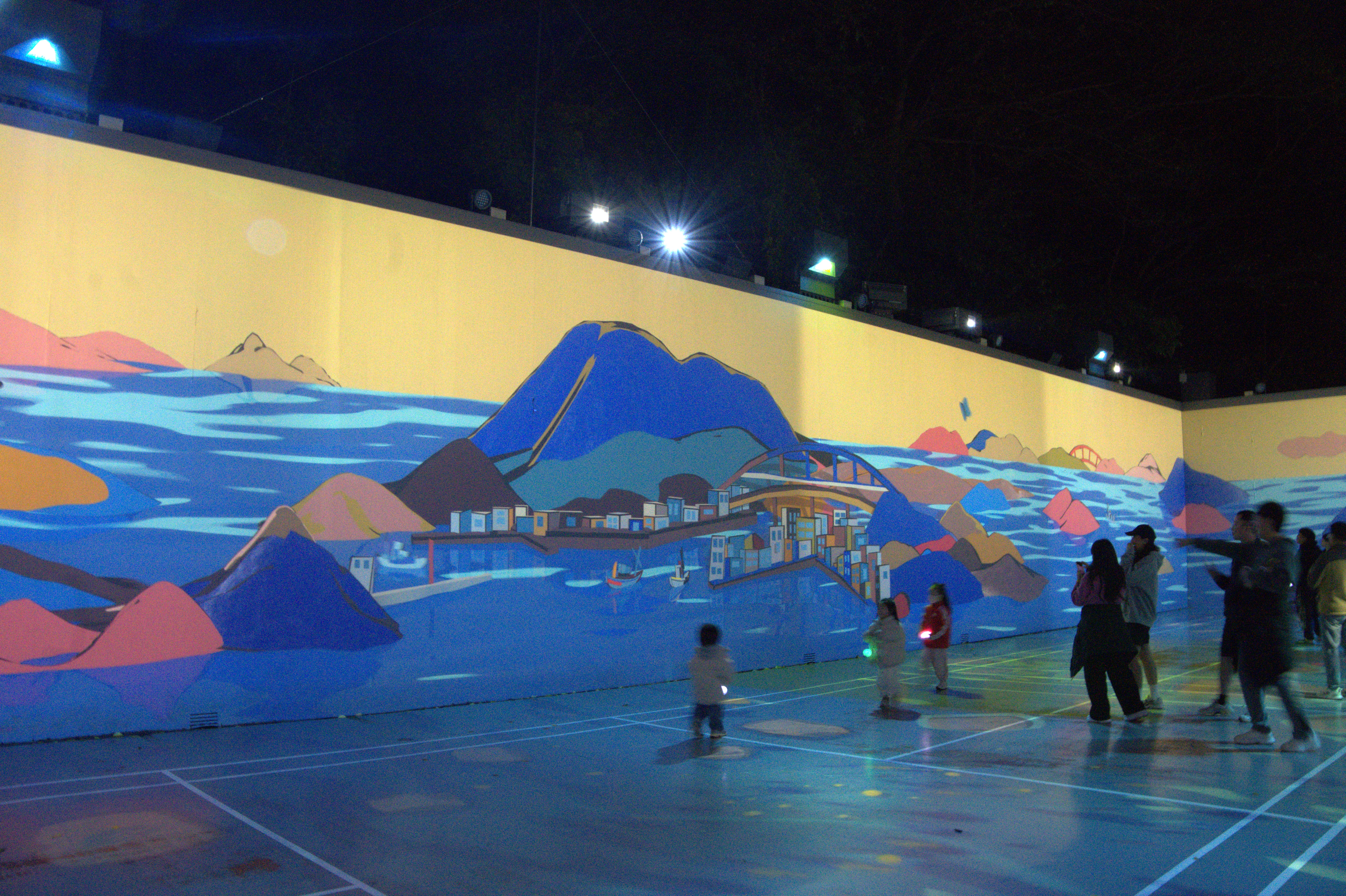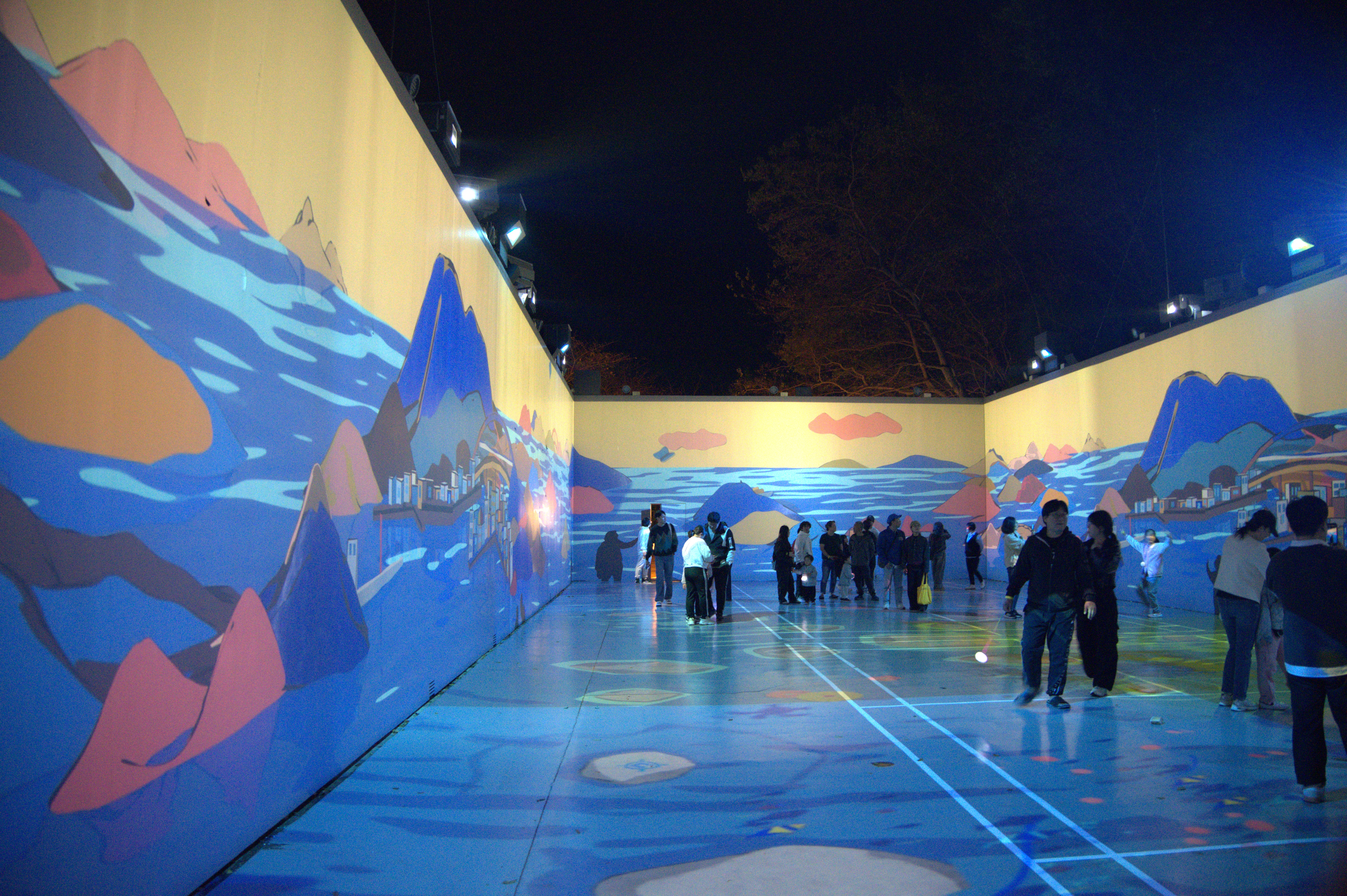 다음 벽화들이 있는 곳으로 살짝의 오르막이 이어진다. 말이 필요없이 여기도 형광색의 조명들로 눈을 즐겁게 해준다.