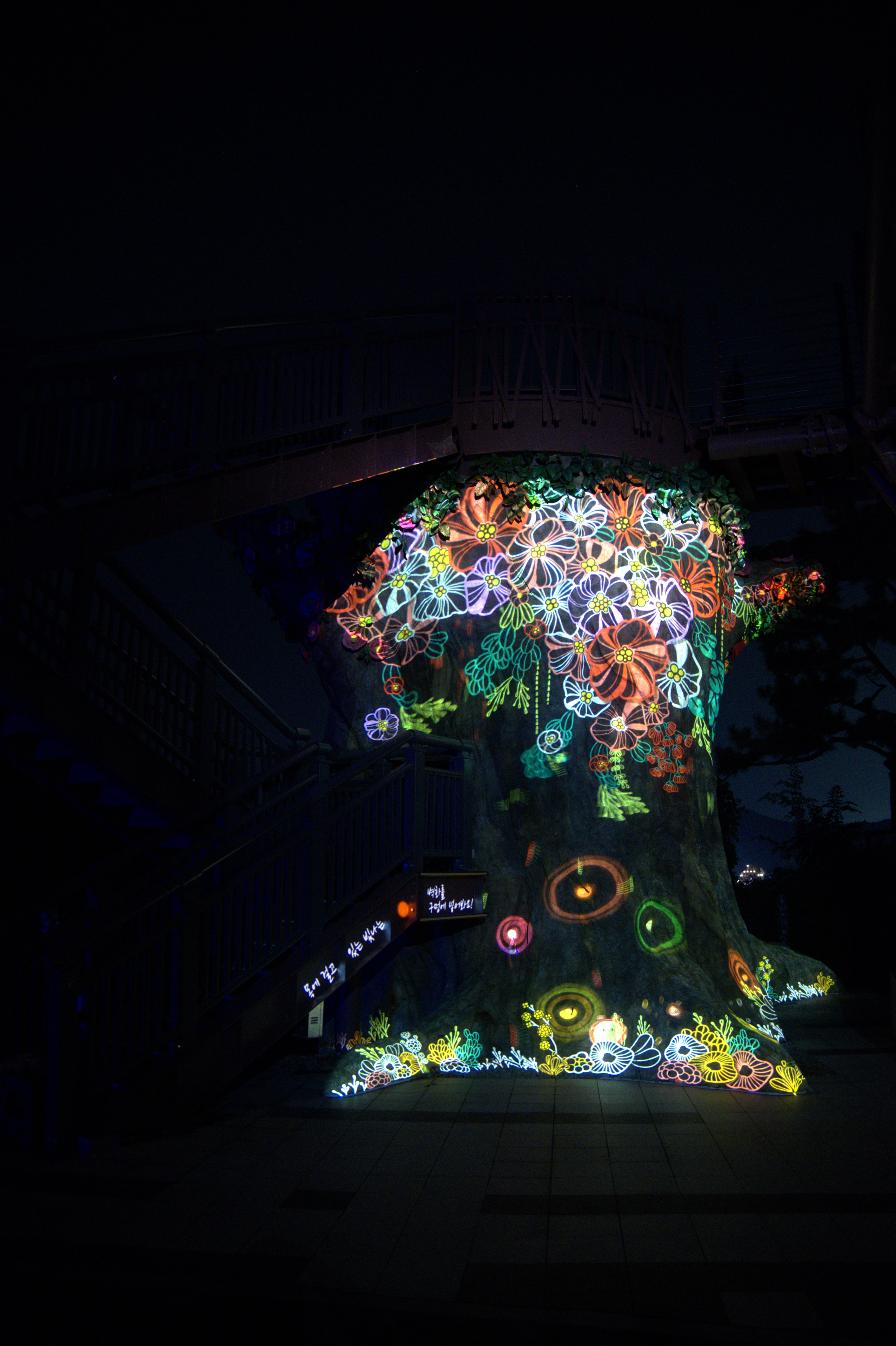 영상을 재생해 주는 다음 코스까지도 남망산의 일부를 조명으로 너무나도 이쁘게 만들었다. 아산의 은행나무 길에서 야간에 비추는 조명과 비슷한 느낌도 들었다.