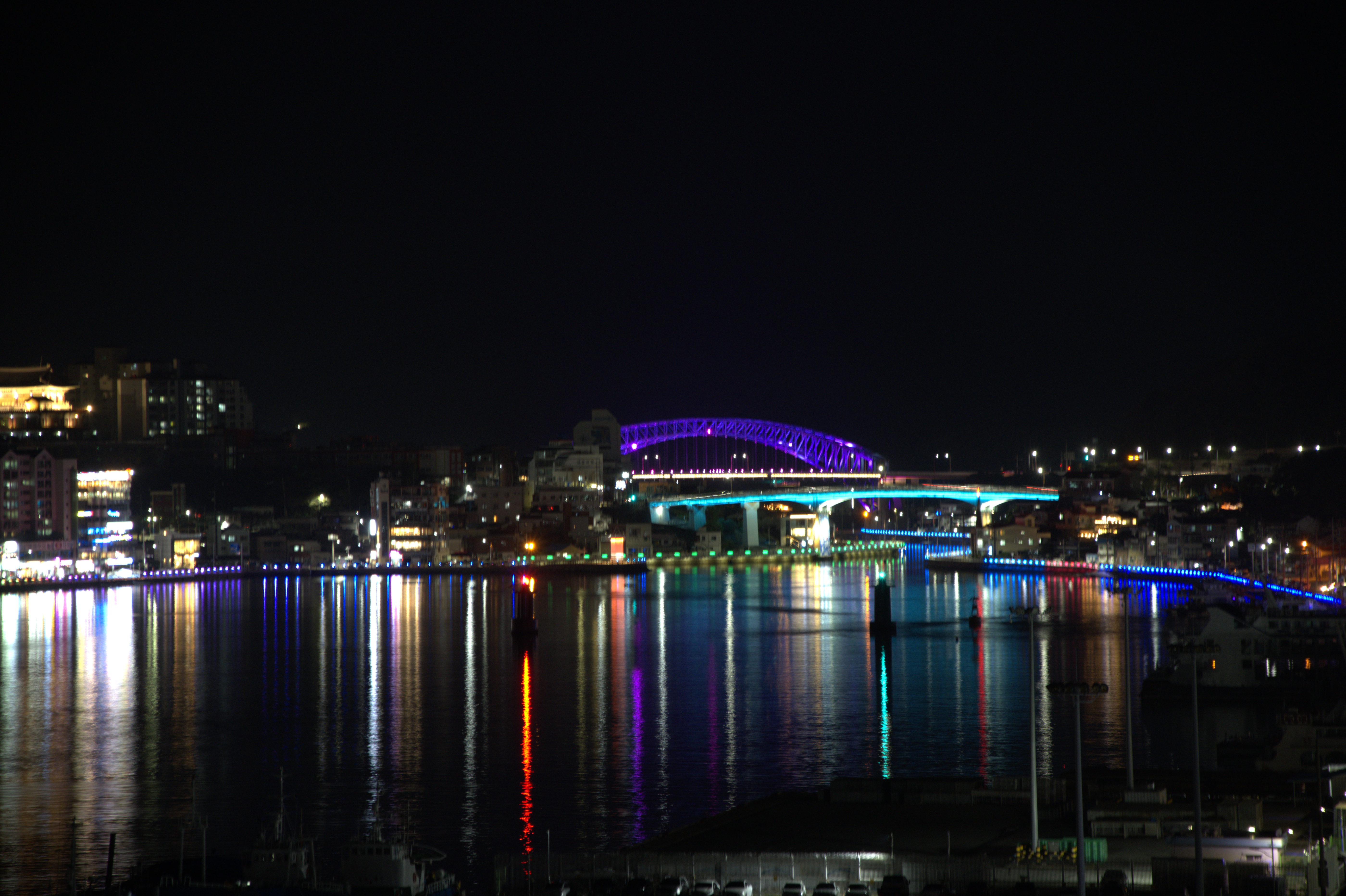 매표소가 높은 고지에 있어서인지 통영항의 모습이 위에서 너무나도 이쁘게 비춰졌고, 형광색이 바닷물에 길게 늘어진 모습이 너무나도 이뻤다.